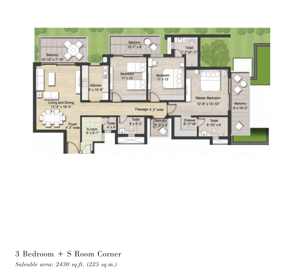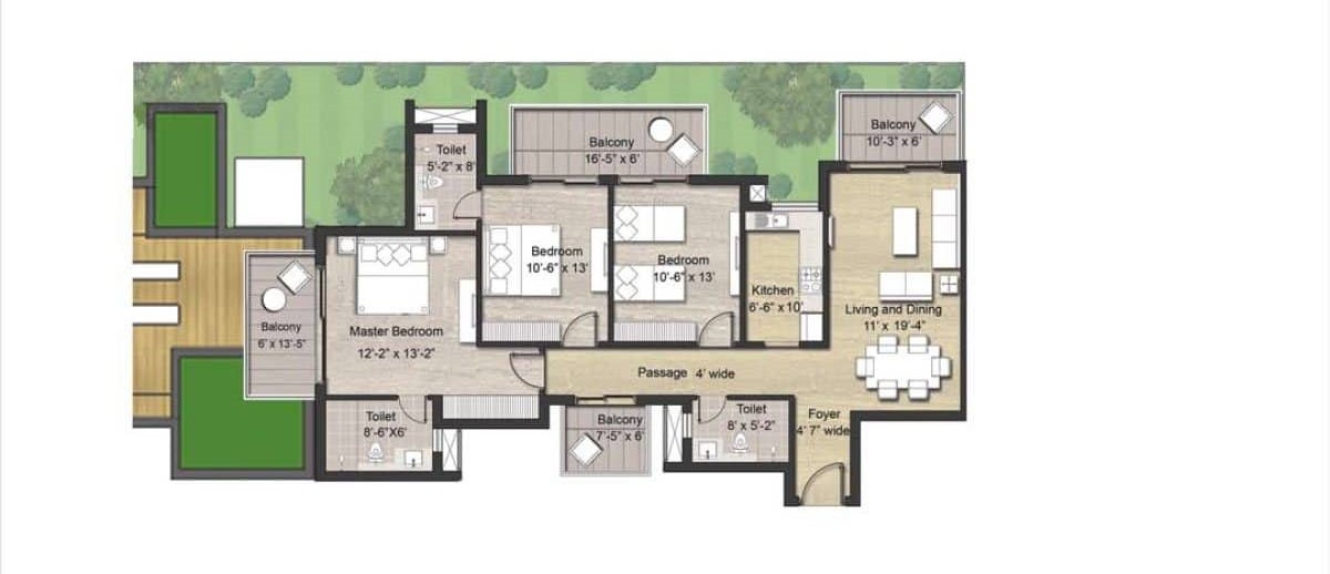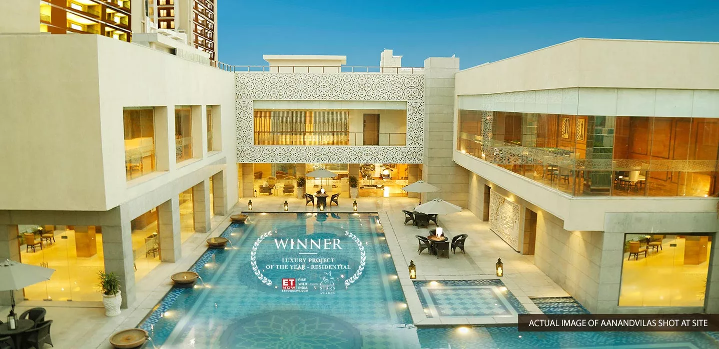 Spread across 12 acres, Puri Aanand Vilas offers 12 towers with G+6 and G+13 floors, featuring super luxury 3BHK and 4BHK apartments, including options with a servant room.