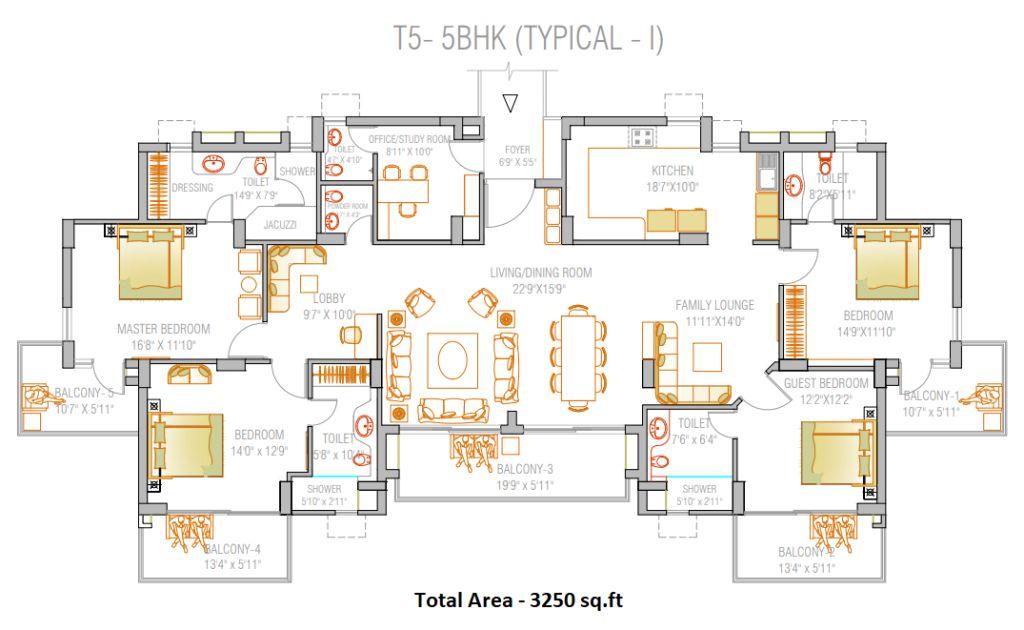 Specifications of 5 BHK